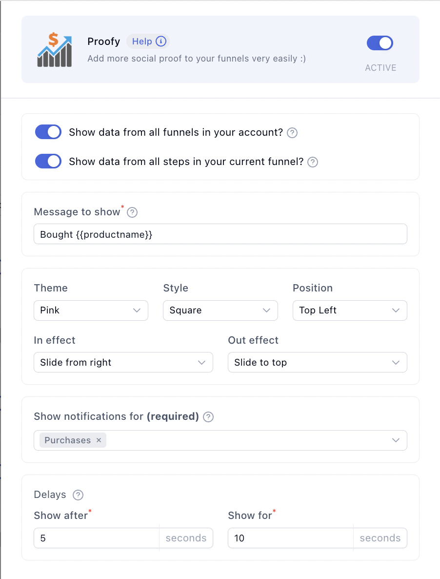 Enabling Proofy on a funnel is the next step. You can also customize display settings.