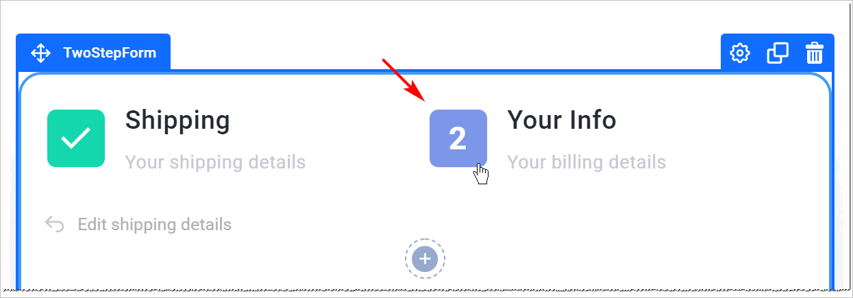 1. Place the **2-step form** element on the canvas.
