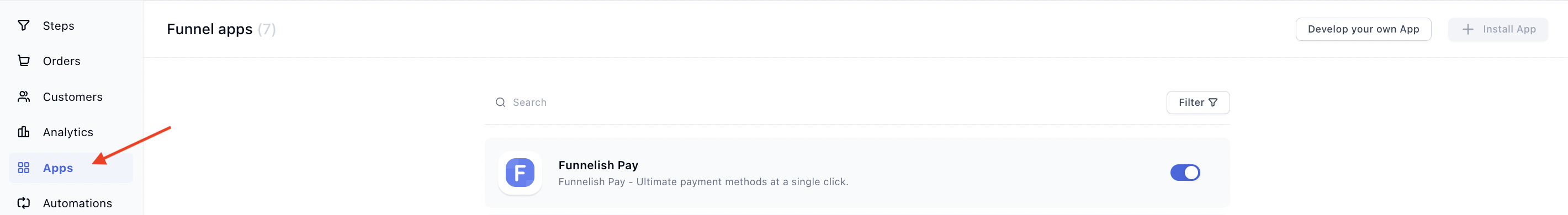 ## 1. Enable Funnelish Pay from the apps menu