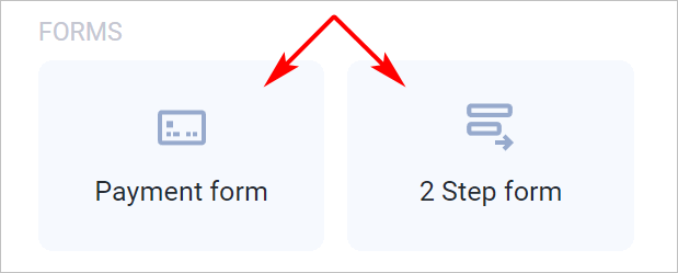 2. Place a payment element on the step canvas. You can use the **Payment form** or the **2-Step form**.