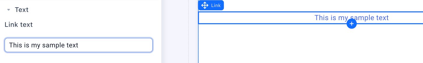 Go to the side panel to customize the link text and design. Click the **Style** tab, and you'll find all the standard tools here (e.g. alignment, margins, background color).